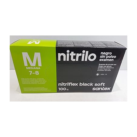 GUANTES NITRILO NEGRO SIN POLVO M SANTEX